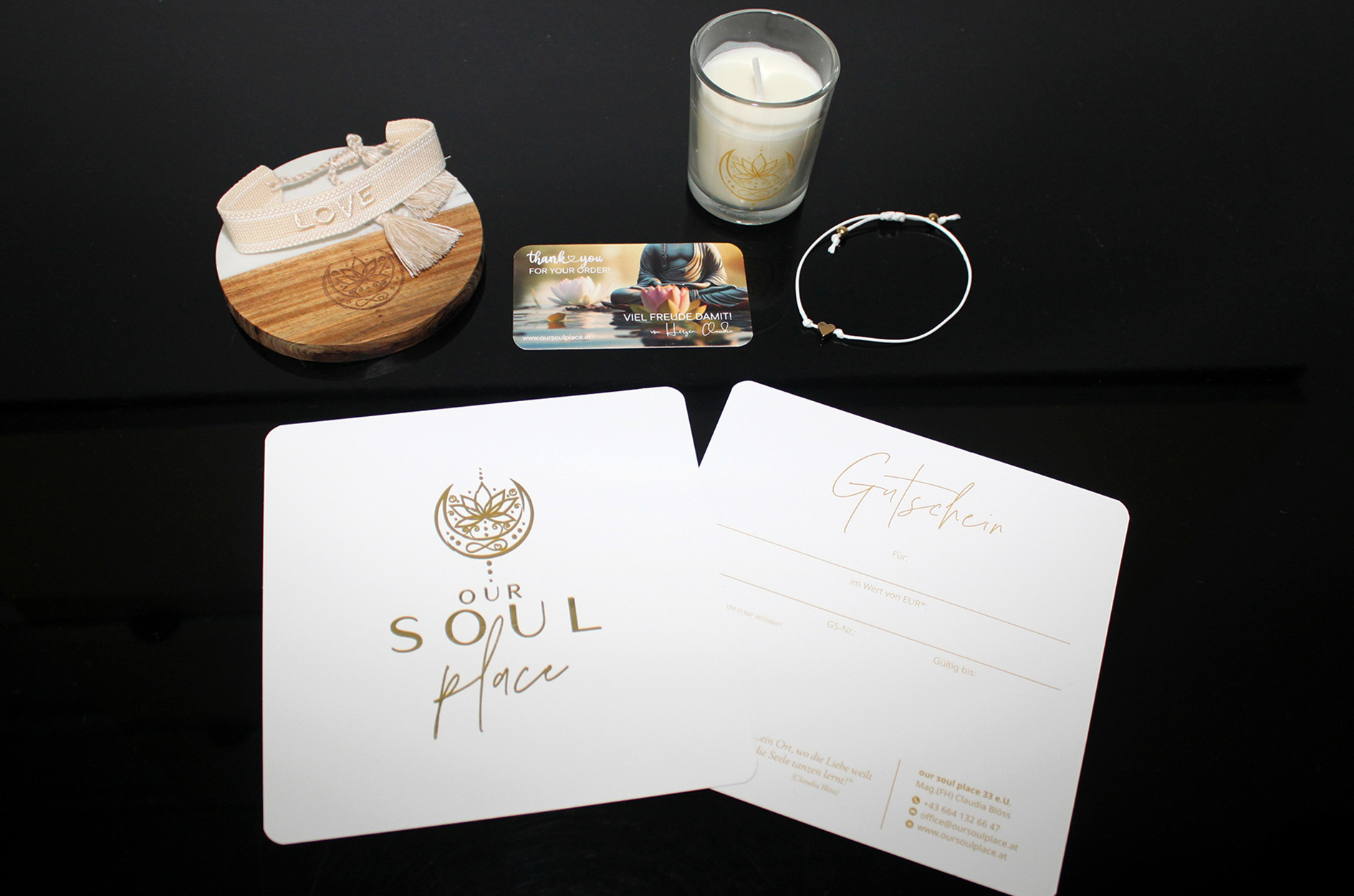 Logo & Corporate Design Our Soulplace, Gutscheine, Give Aways, Klosterneuburg
