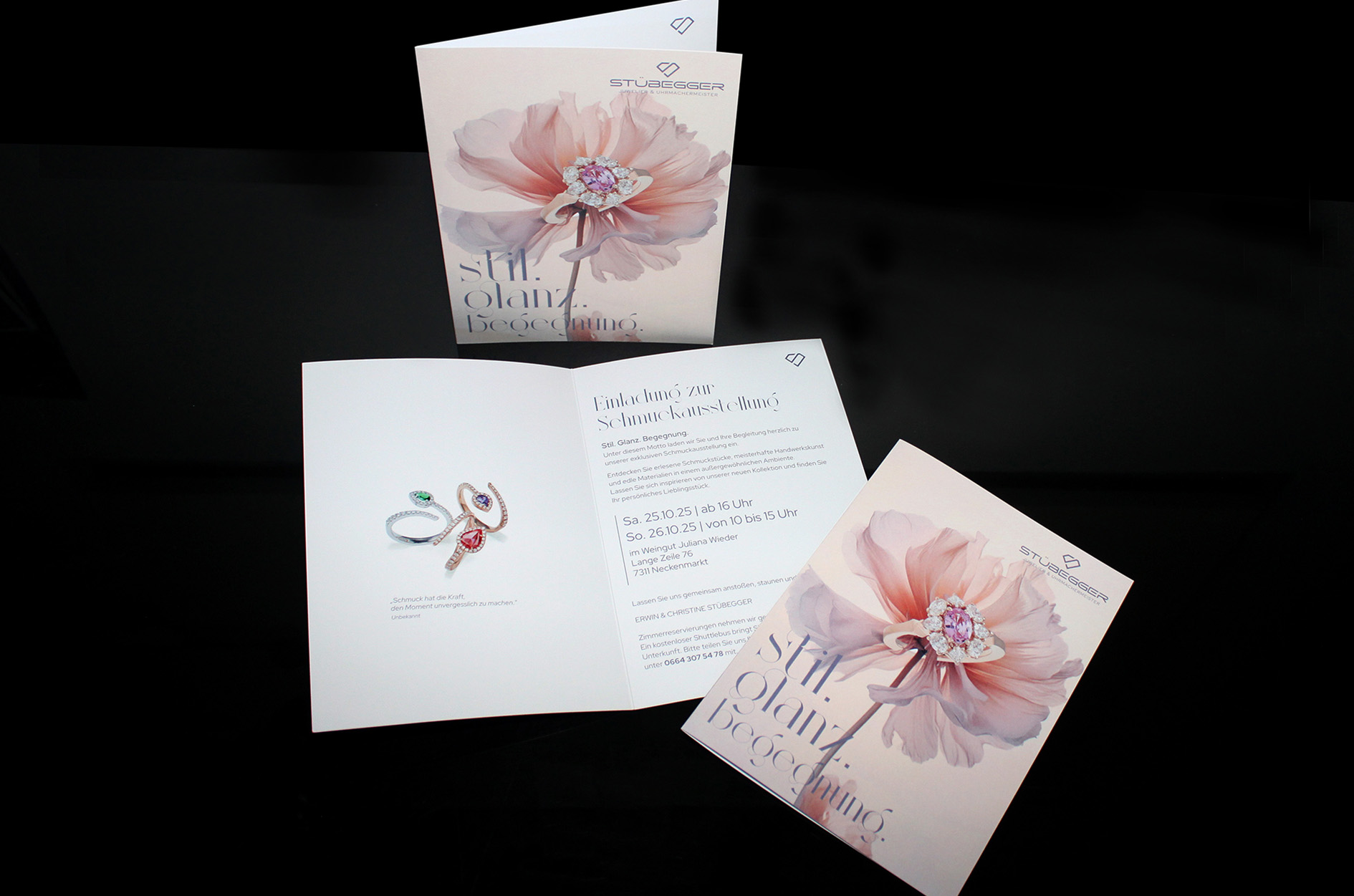 Layout & Design Einladungen Schmuckausstellung Juwelier Stübegger, Friedberg